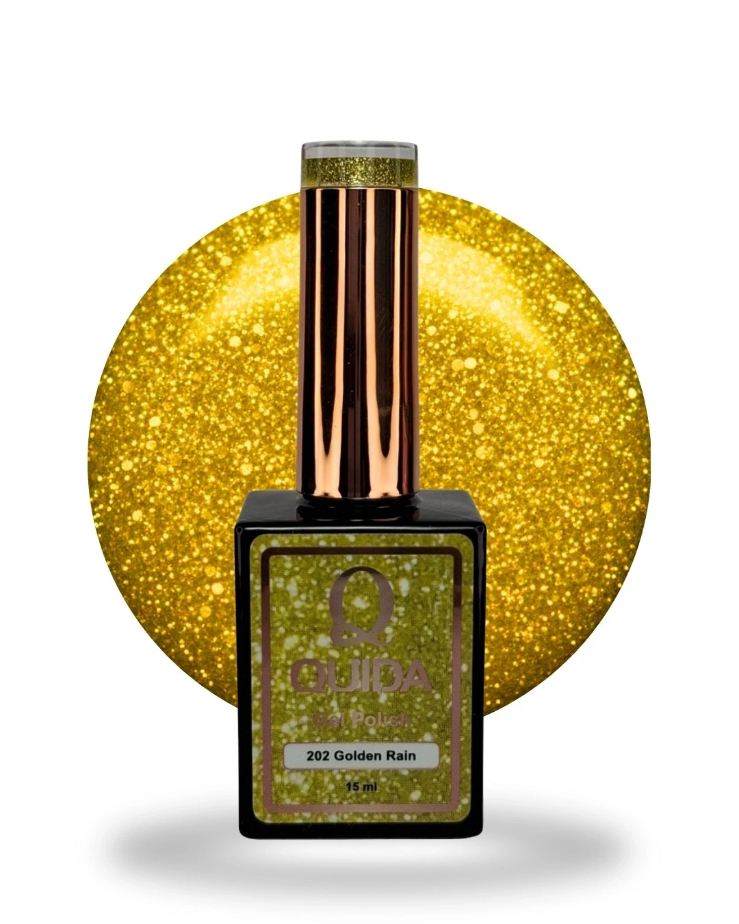 Geef je manicure een gouden randje met Golden Rain #202 – warm, sprankelend en onweerstaanbaar chic.